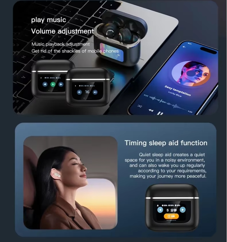 2024 New Design LCD Touch Screen Display Headset ENC TWS Earbuds Waterproof Earphone Wireless Headphones Gaming Earbud