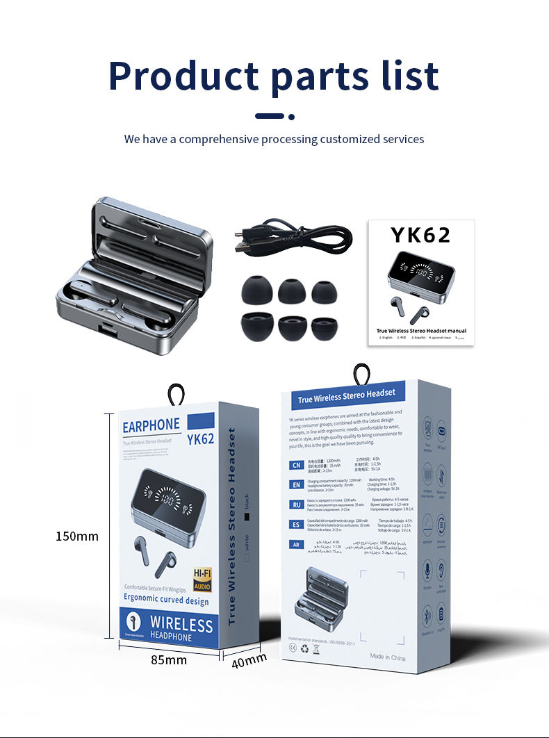 2024 New Design LCD Touch Screen Display Headset ENC TWS Earbuds Waterproof Earphone Wireless Headphones Gaming Earbud