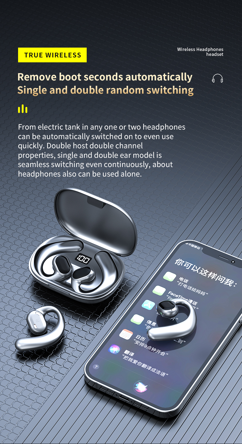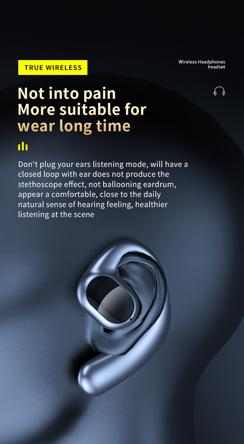 Headphone 7 hrs Working Time Blue tooth V5.3 Comfortable To Wear Ear Clip Type TWS Earphone