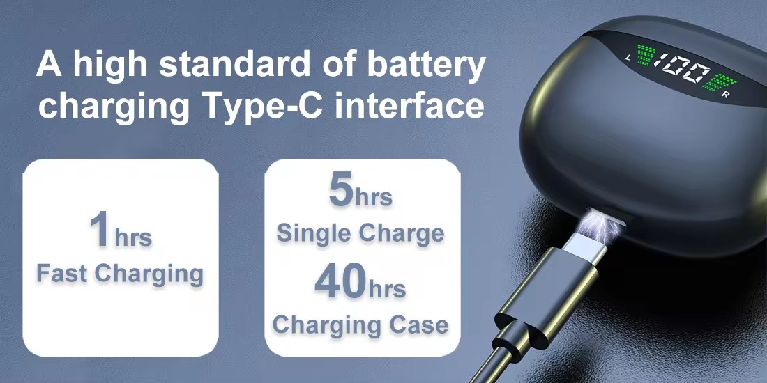 In-Ear Noise Canceling Earphones HD Call HIFI Stereo Wireless Earbuds With Type-C Charging Cable and Smart Touch