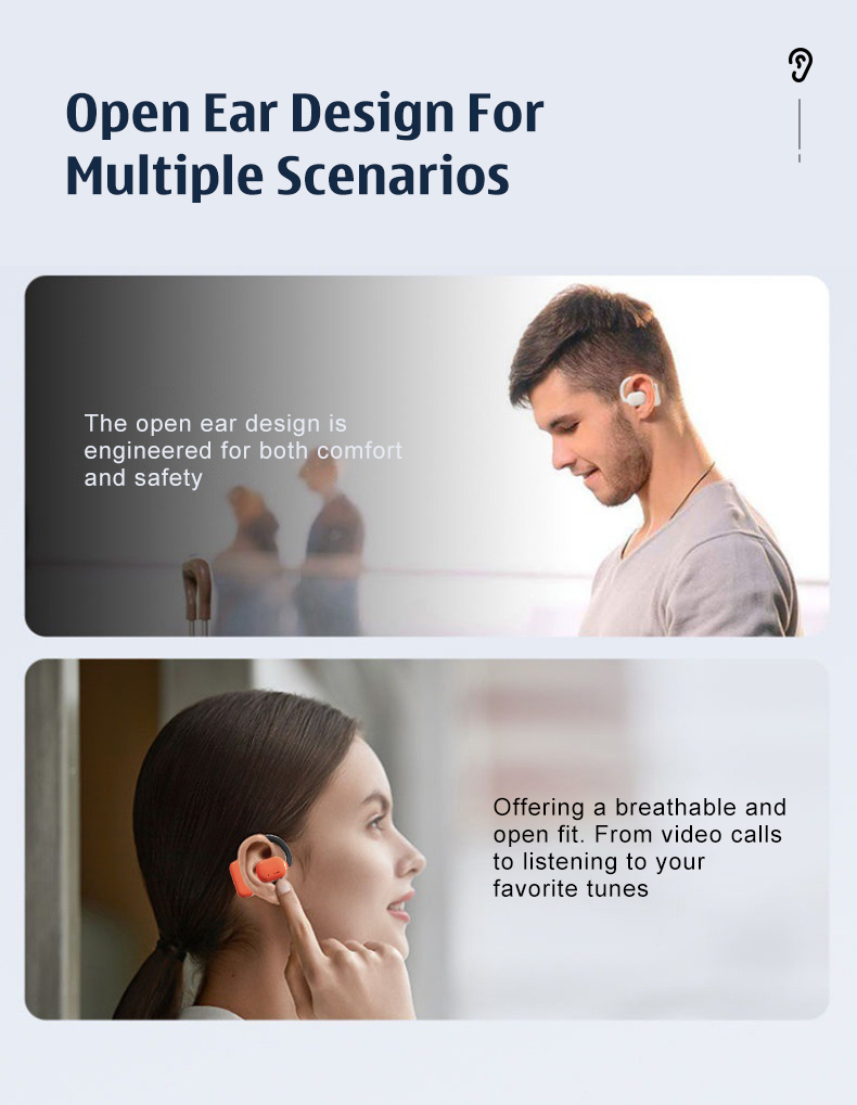 OWS TWS 5.3 Wireless Bluetooth Earbuds Hifi Stereo Headset with LED Display Noise Cancelling Ear Hook Style for Gaming