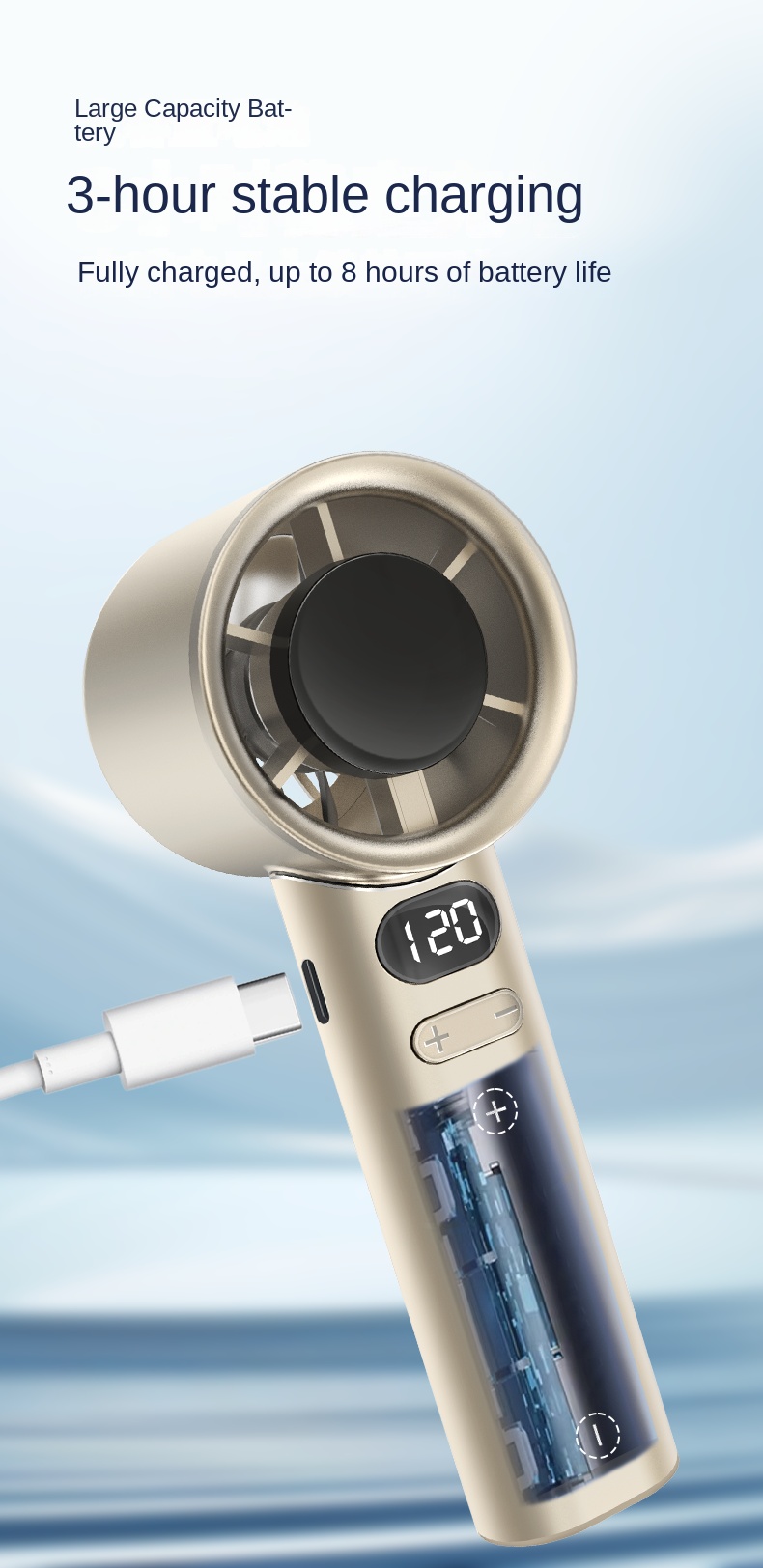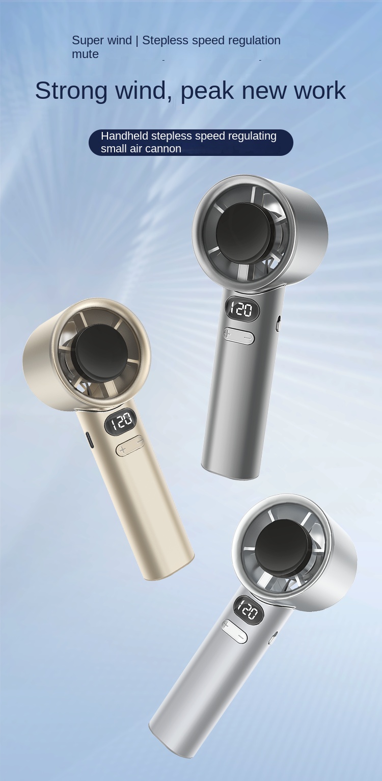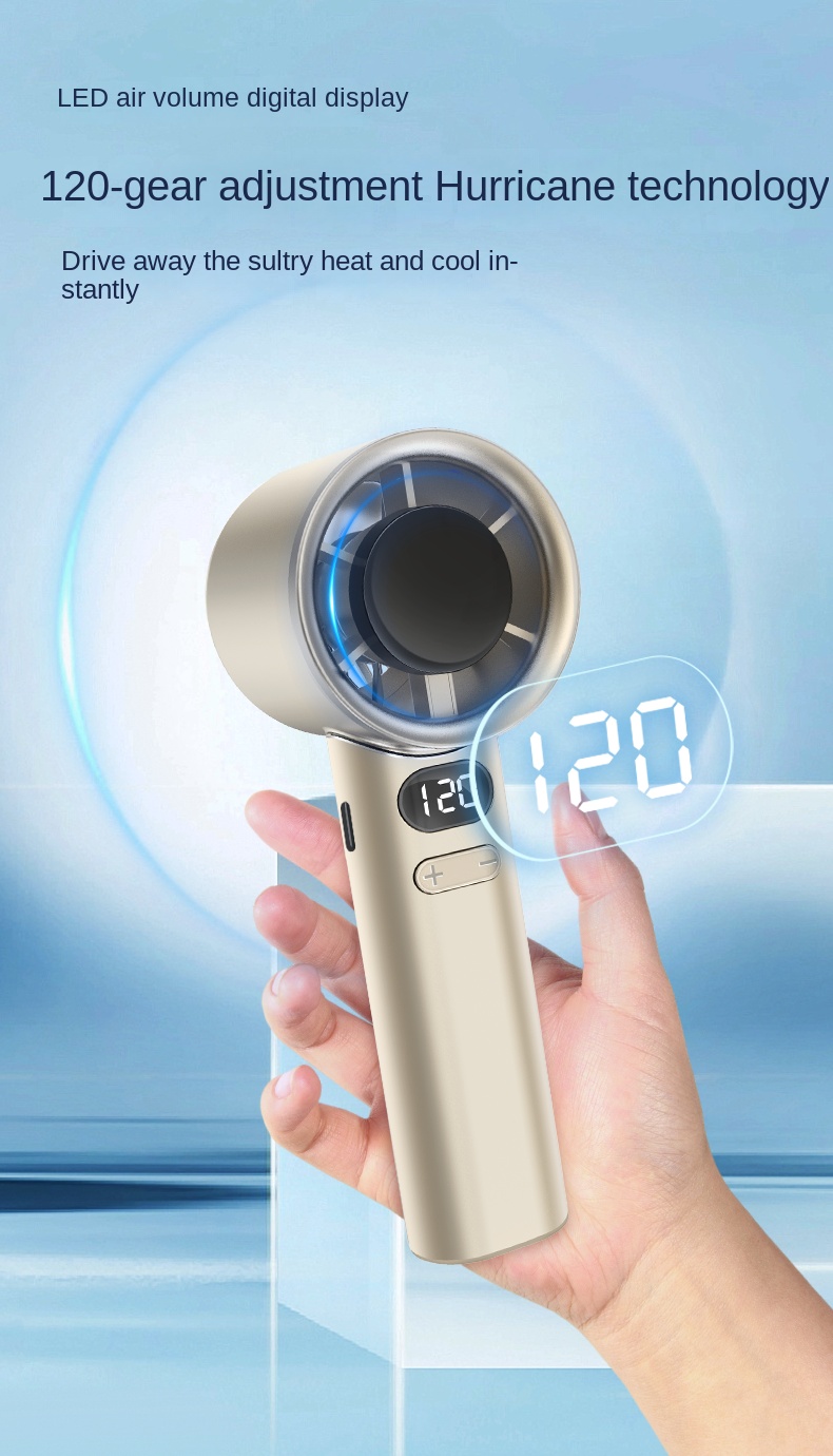 New Hand-Held Violent Turbine Small Fan Digital Display High-Speed 120-Speed Infinitely Variable Outdoor Portable Small Fan