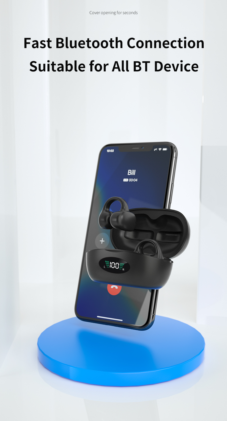 Headphone 7 hrs Working Time Blue tooth V5.3 Comfortable To Wear Ear Clip Type TWS Earphone