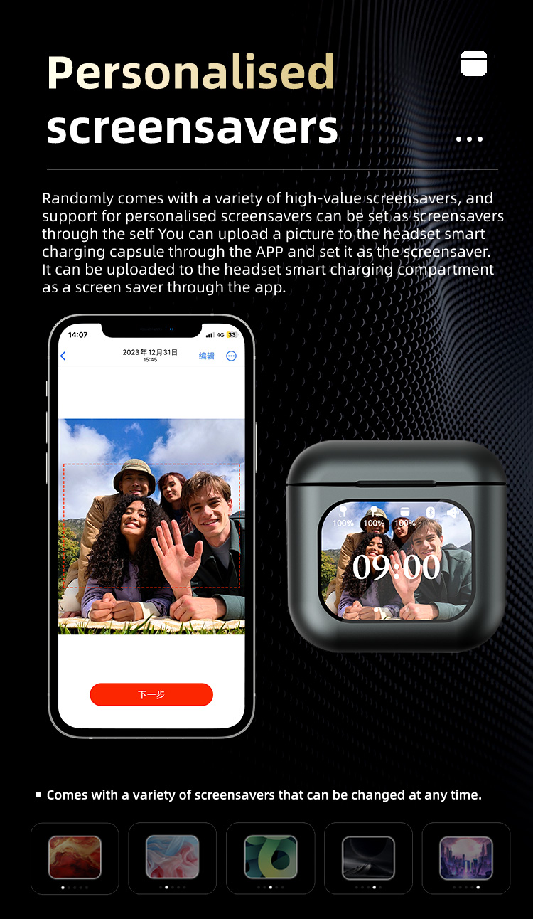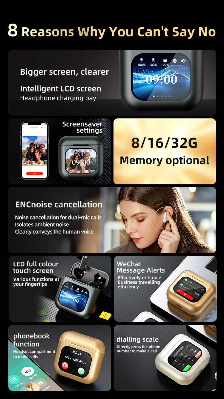 smart Bluetooth call earphones wireless earbuds EMC call noise reduction function LCD earbuds forapple headphones