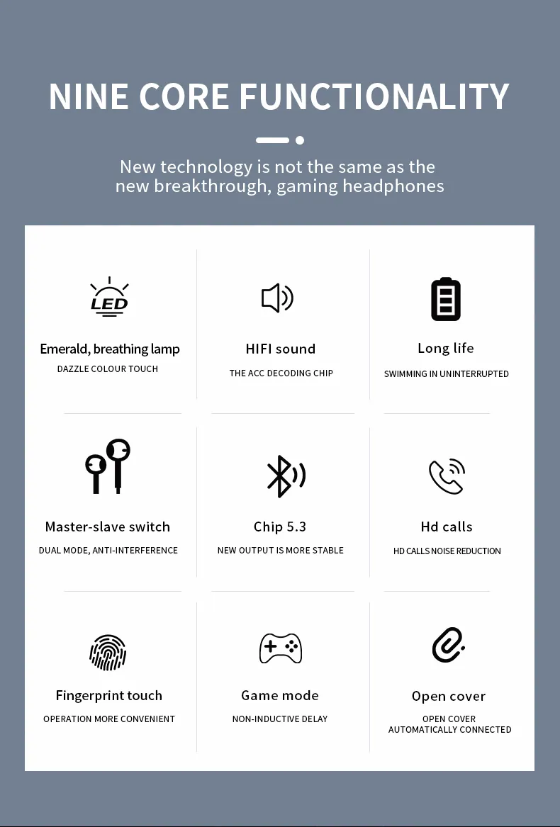 New Original Earphone Gaming in-Ear Sport Headphone Wireless Bluetooth Headset V5.3 Auriculares TWS Earbuds