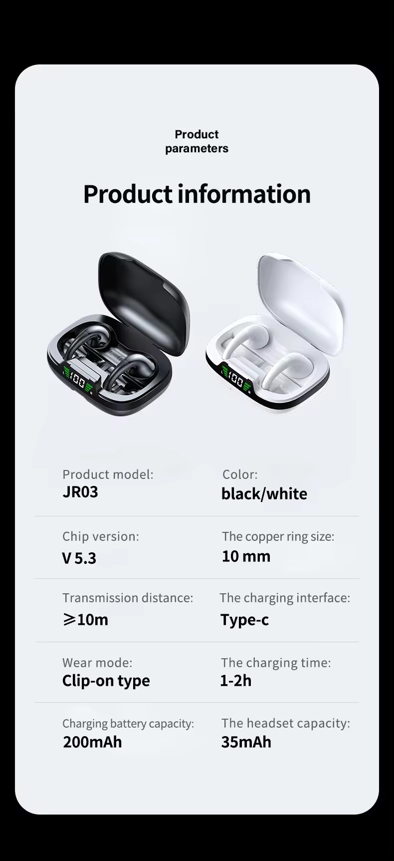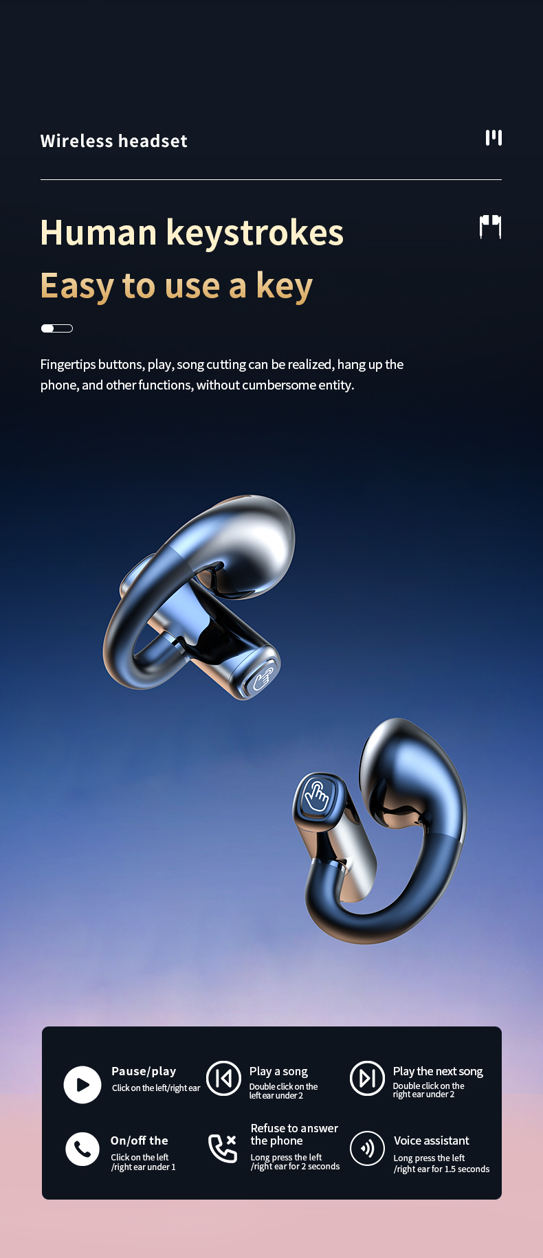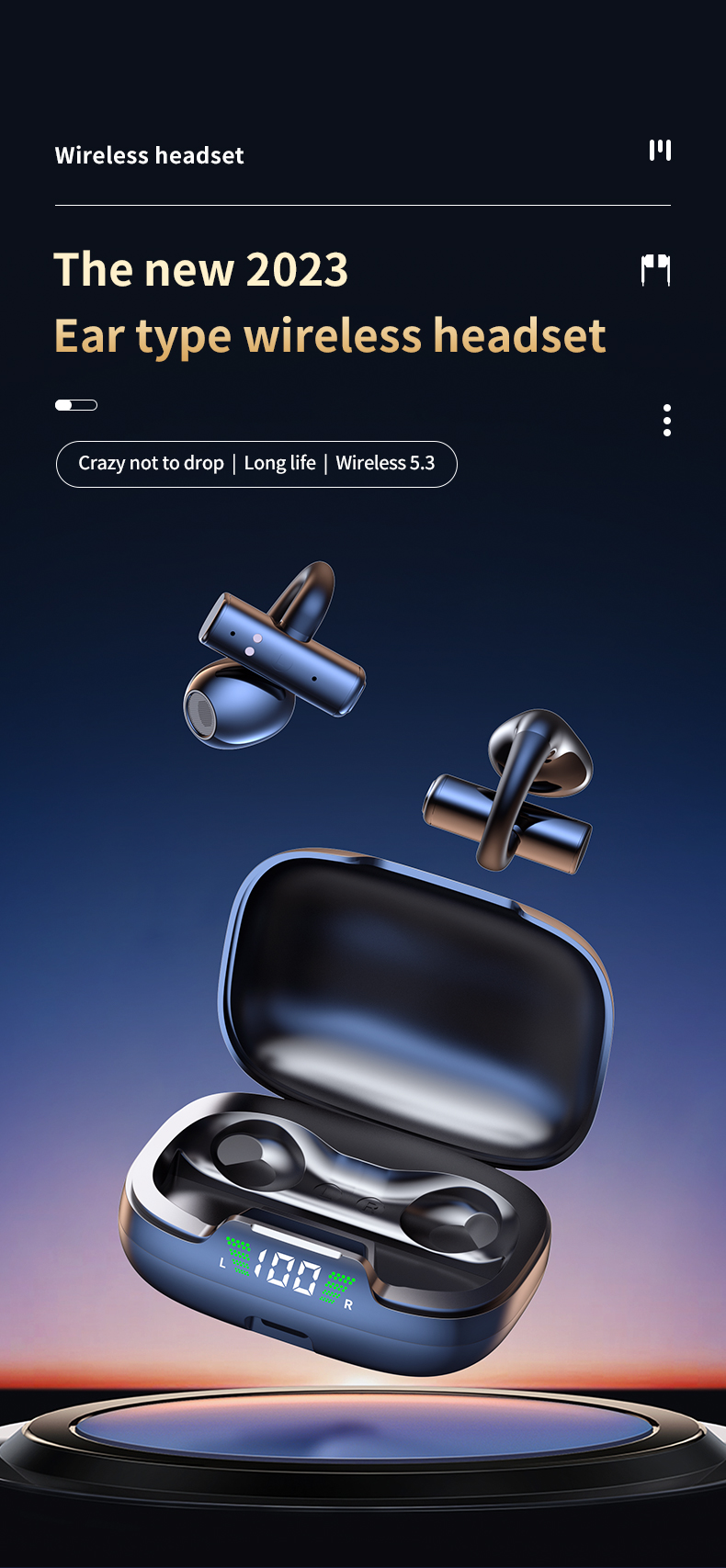 Headphone 7 hrs Working Time Blue tooth V5.3 Comfortable To Wear Ear Clip Type TWS Earphone