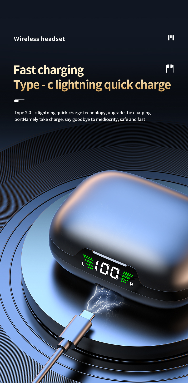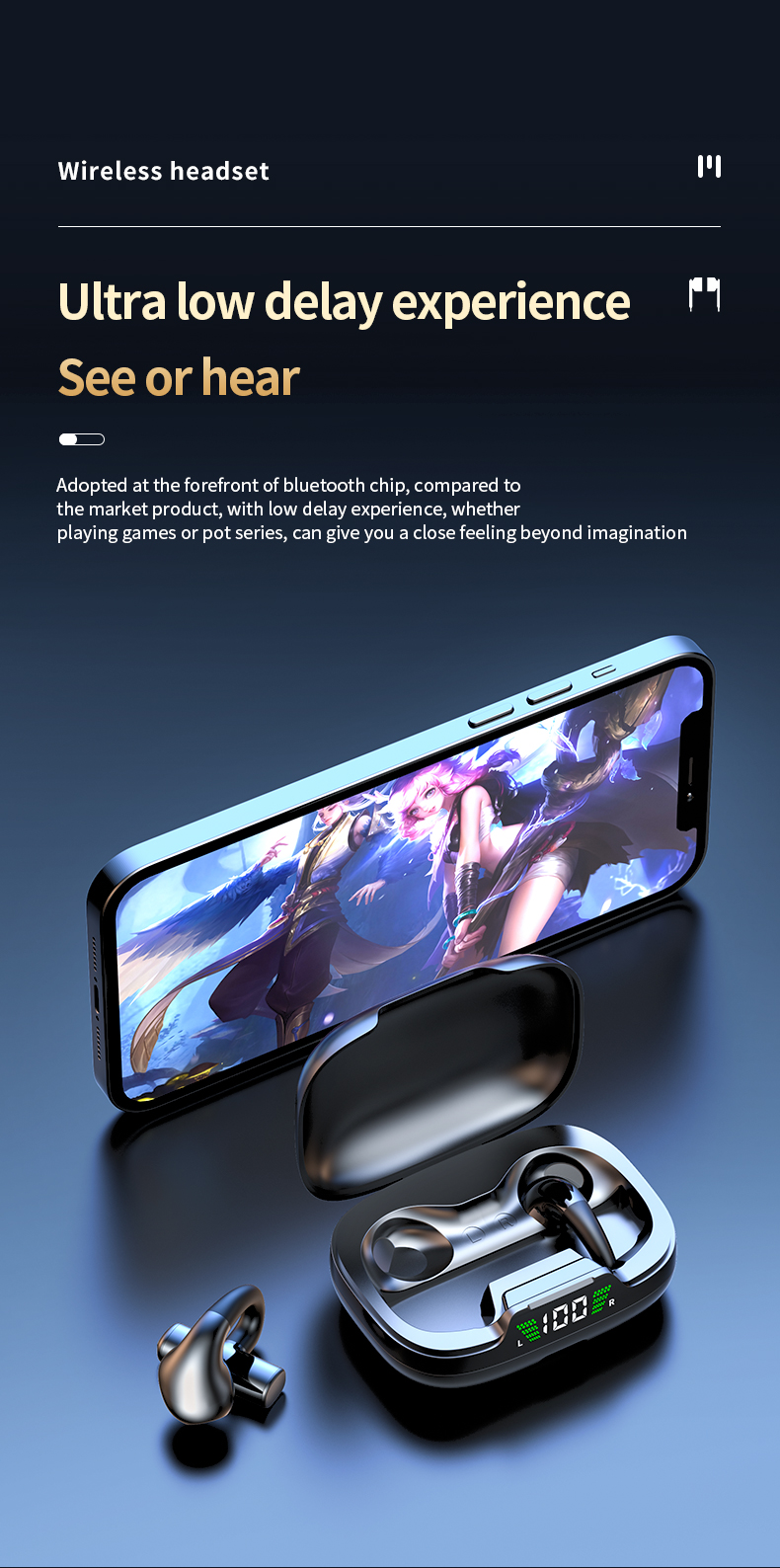 2024 New Design LCD Touch Screen Display Headset ENC TWS Earbuds Waterproof Earphone Wireless Headphones Gaming Earbud