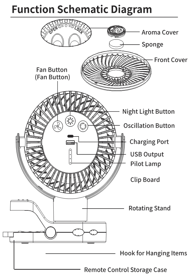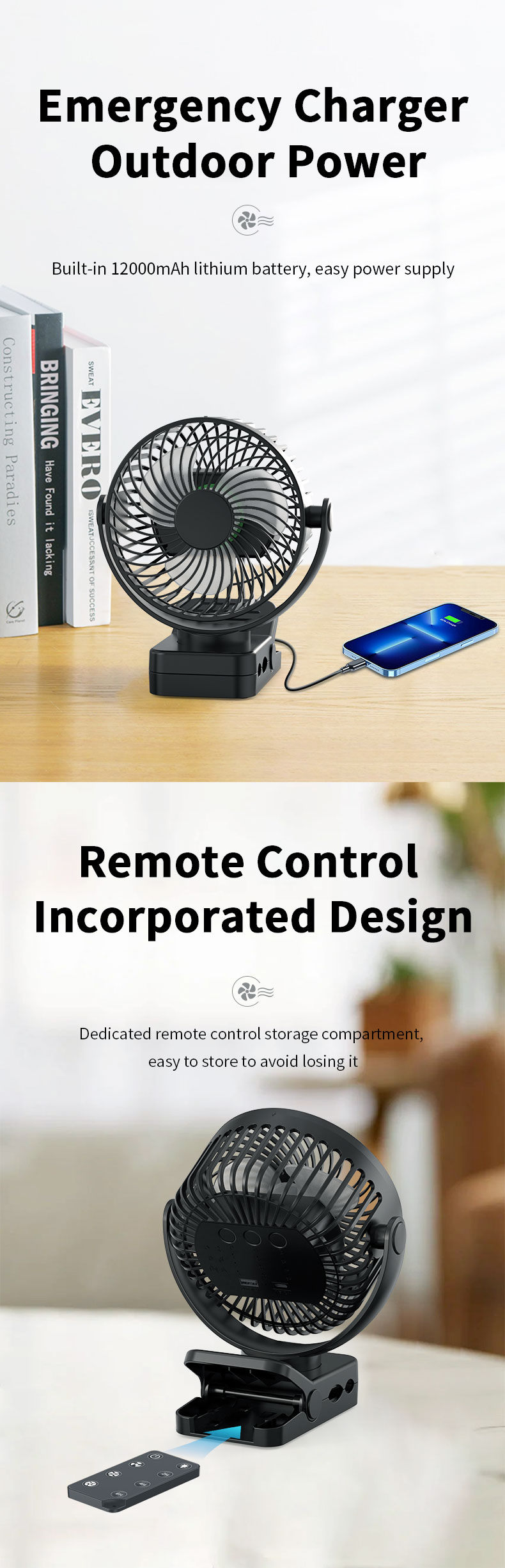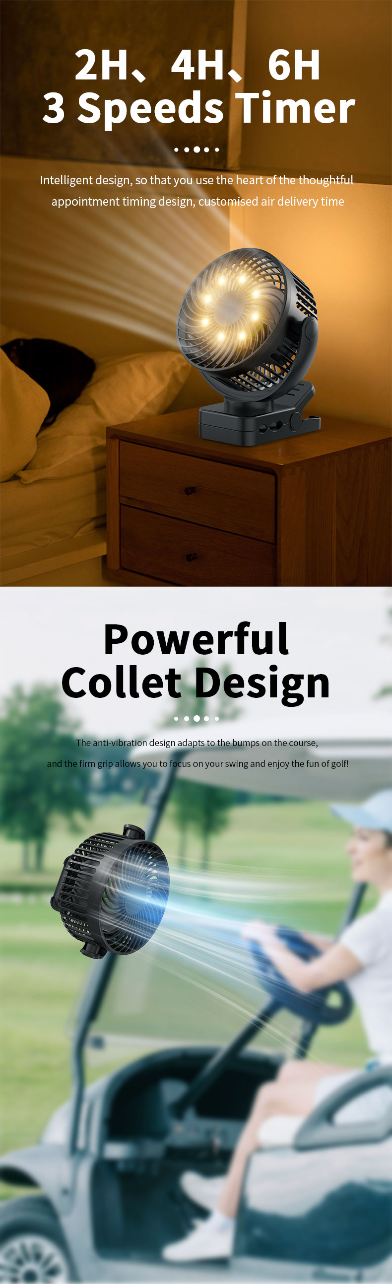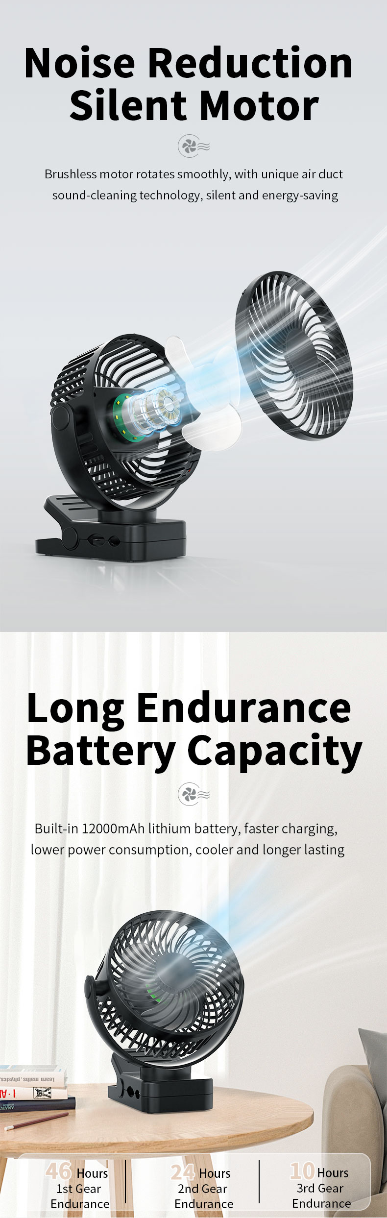 USB Rechargeable Portable Clip Fan With LED Lights for Tent Desk Office