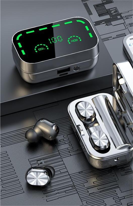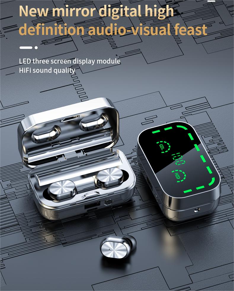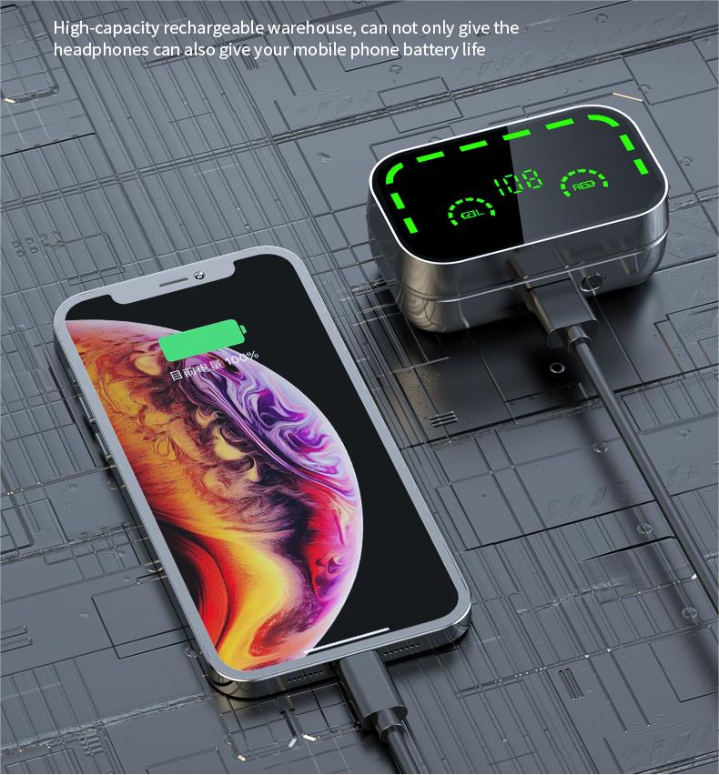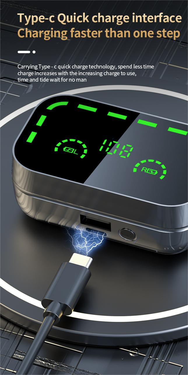 Wholesale stock with power bank mirror Headset type-c led Digital Display bluetooth earbuds tws True Wireless earphone