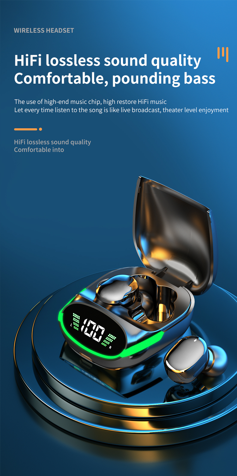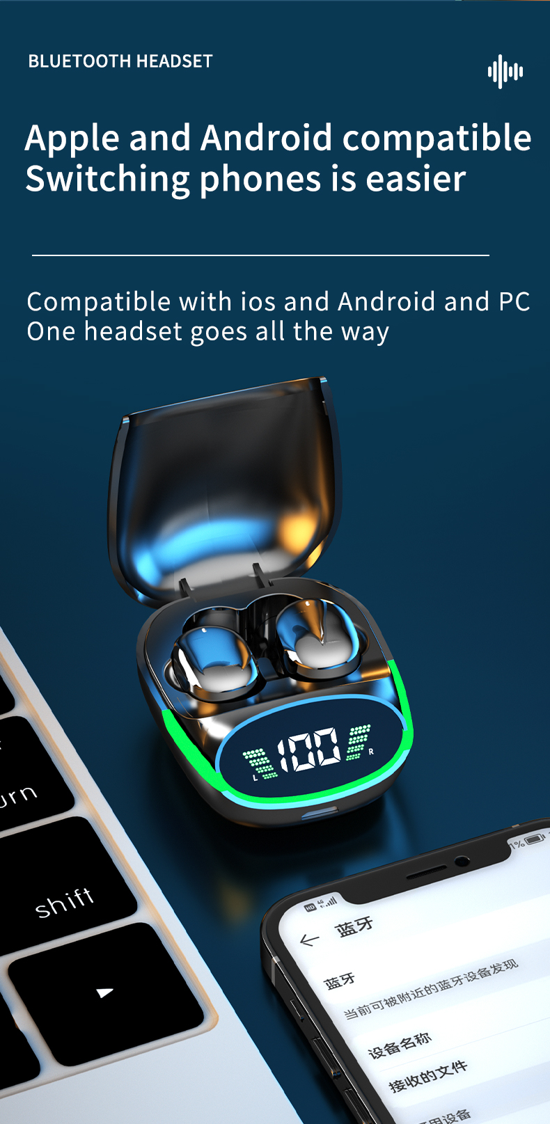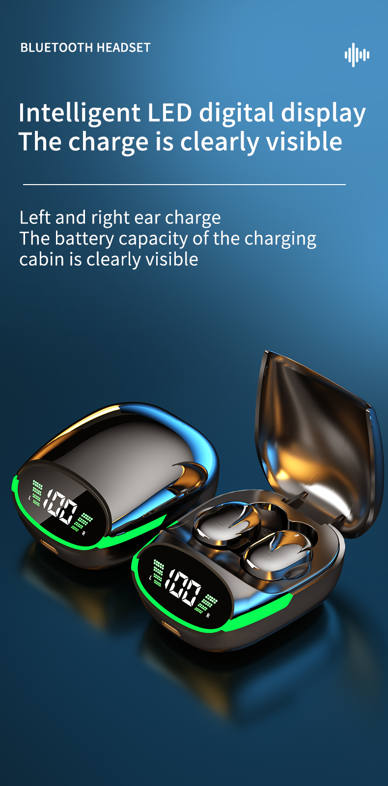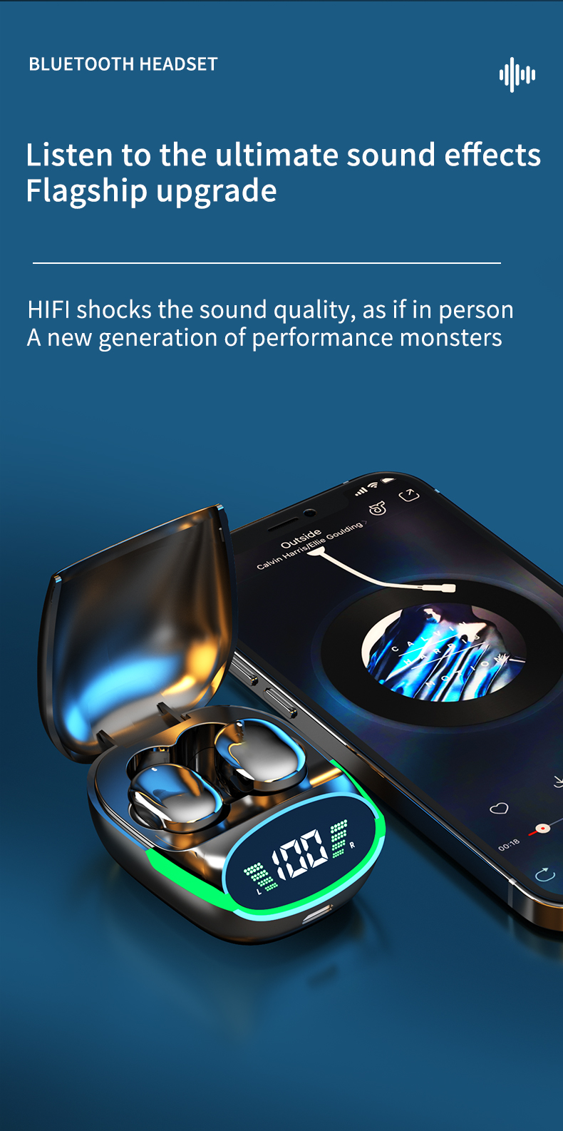 2024 New Design LCD Touch Screen Display Headset ENC TWS Earbuds Waterproof Earphone Wireless Headphones Gaming Earbud